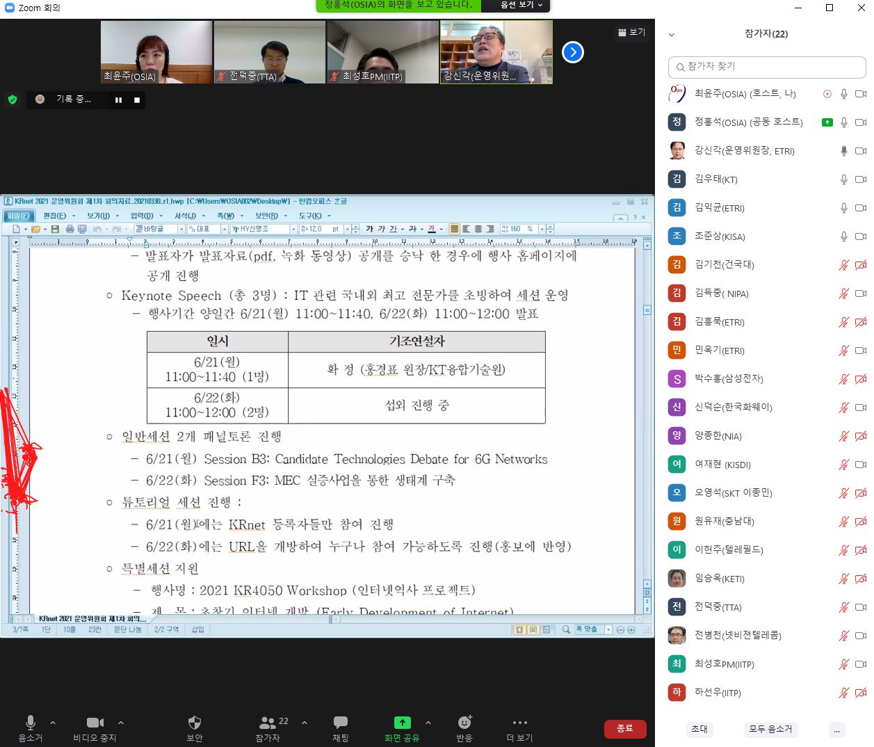 KRnet 2021 조직위원회 제1차 회의(2021. 3. 24.)